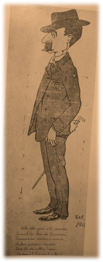 He emerged as a person of note already during his student years, showing spirit and literary capacity, and he founded and edited Cagliari’s first satirical magazine, which – apart from student jokes – focused on themes such as the advance of the proletariat, the role of the bourgeois, industrial and merchant classes, anticlericalism and positivism.