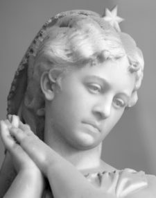 In a period in which sculpture was divided into a realist and an idealist mode, the work commissioned by Count Francesco Ciarella to preserve the memory of his wife, who had died six years earlier at just 35 years of age, under the chisel of Giovanni Battista Villa was an elegant allegorical female figure, which as remarked by art critic Filippo Vivanet, truly ‘infused spirit into matter and chastely blended beauty with truth’. However, despite its idealised realism, the young, beautiful Maria Anna appears as not yet detached from her body, not yet completely ethereal. Indeed, the artist, setting a bank of clouds under her feet and a star on her head and arranging skilfully the evanescent folds of her blouse successfully conveyed the idea of ‘an elect spirit, held for a moment in its movement towards the heavens by earthly affections’ (Maria Grazia Scano).