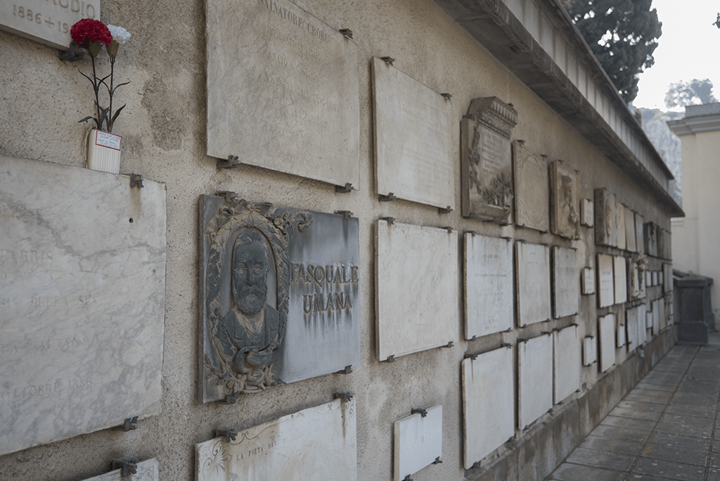 He died in Cagliari on 16 November 1887, and was buried at Bonaria in the columbarium that borders the Old Cemetery to the east, in a tomb on the third square, sealed by a bronze slab made by Sartorio.