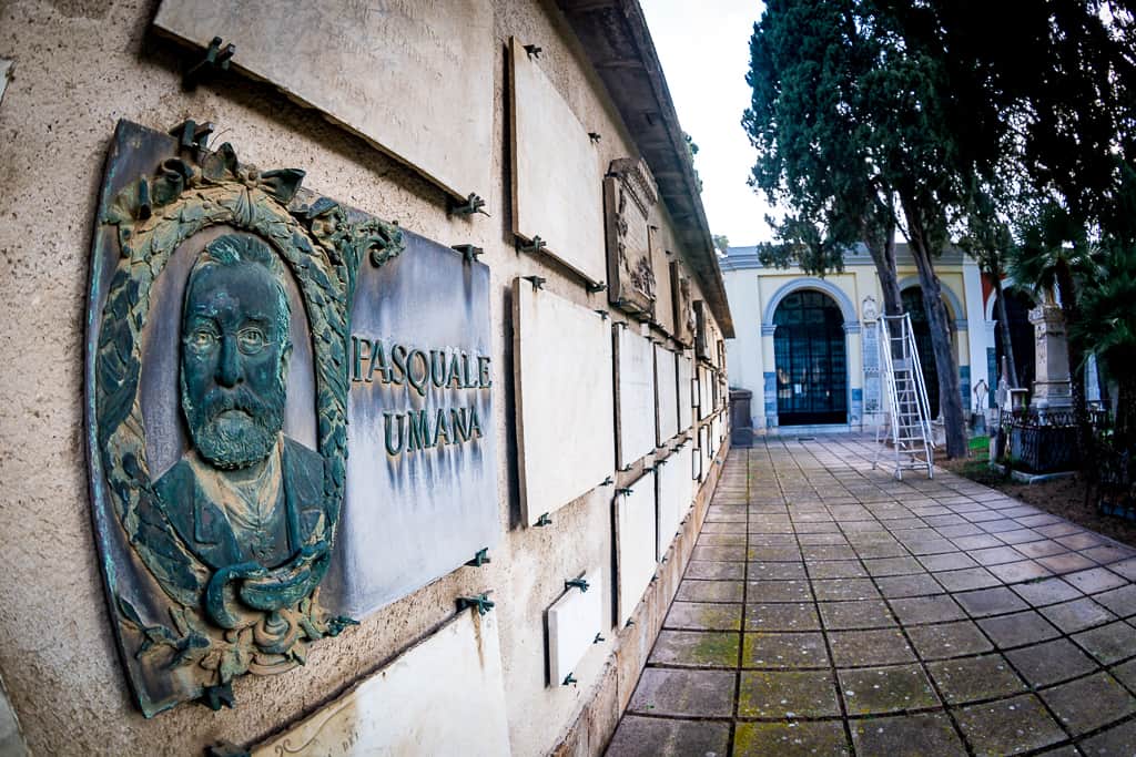 L’epitaffio veramente essenziale, ridotto al semplice nome e cognome, sembra che voglia lasciare il compito di ogni altro elogio dello scomparso all’espressività del suo ritratto: